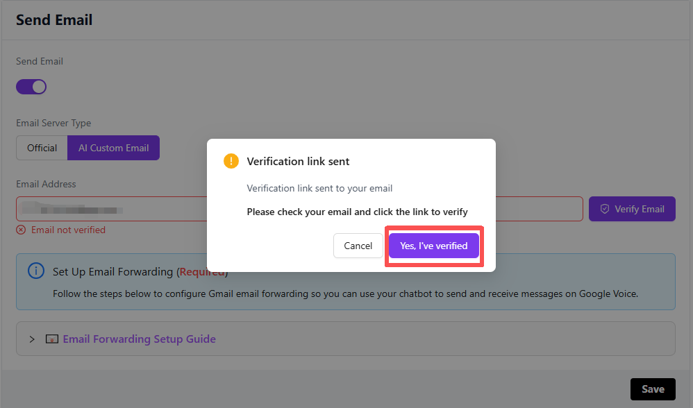Test completed. You can now proceed to set up email forwarding. Please refer to the page documentation for details.